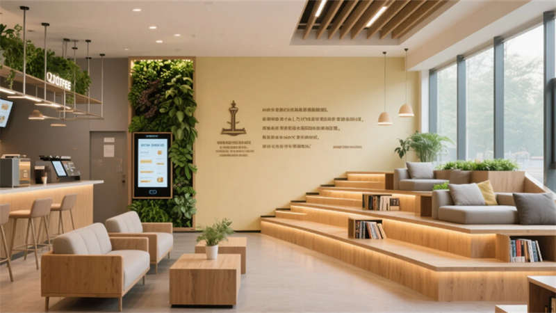 模擬法庭的深藍吸音墻面沉淀莊重氣質(zhì),可升降投影幕布與電子證據(jù)墻構(gòu)建數(shù)字化思辨場域;休閑區(qū)綠植幕墻與暖光閱讀角,則讓理性思考在自然光影中得以舒緩。從智能檔案庫的藍色光帶導(dǎo)航,到洽談室聲學(xué)波浪頂棚,科技元素始終隱于優(yōu)雅形態(tài)之下。