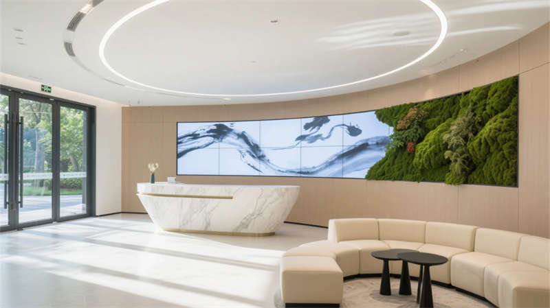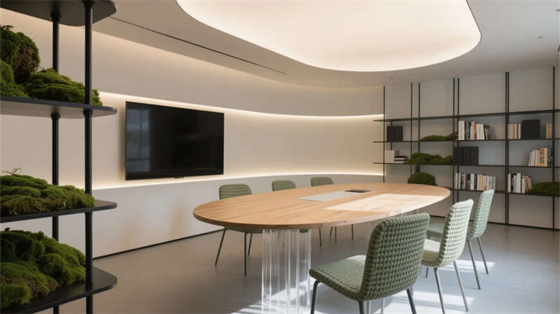 智能接待廳以流動(dòng)數(shù)字藝術(shù)傳遞先鋒調(diào)性,而健康茶水間則通過(guò)有機(jī)材質(zhì)與綠植裝置,構(gòu)建松弛有度的能量補(bǔ)給站。整體空間拒絕刻板分割,家具模塊可隨需求自由重組,金屬線條與低飽和色彩在自然光照下沉淀出理性而溫潤(rùn)的質(zhì)感。