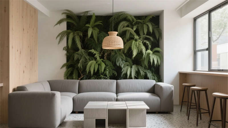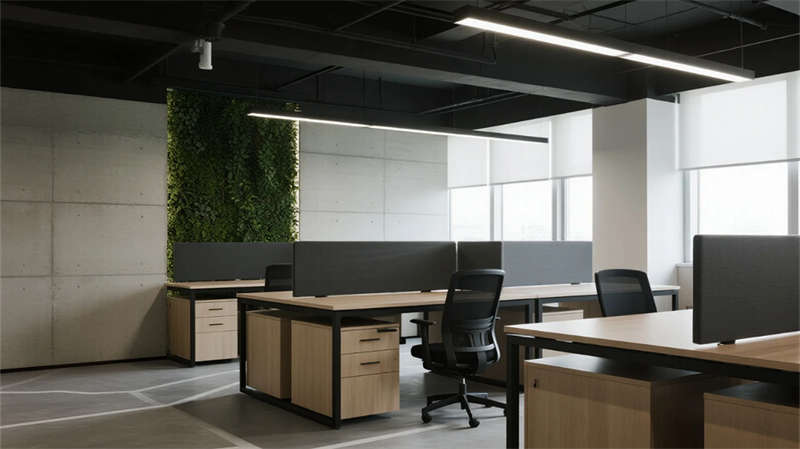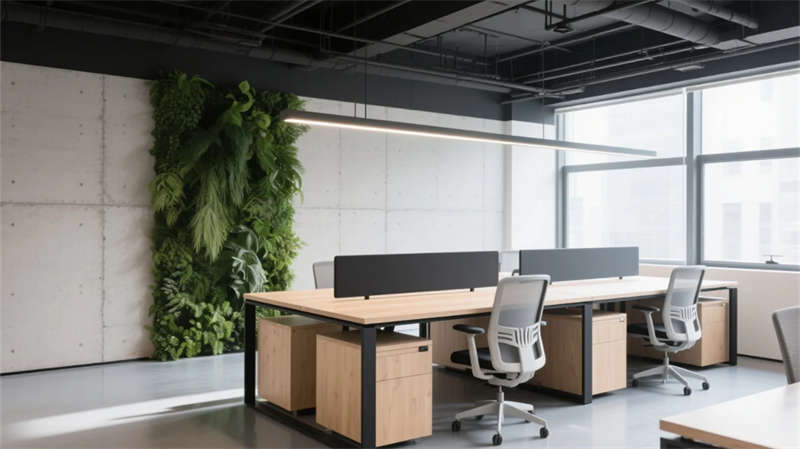 該空間以"自然共生"為脈絡(luò),將輕工業(yè)基因與生態(tài)美學(xué)深度融合。裸露結(jié)構(gòu)的天花與溫潤(rùn)木元素形成張力,貫穿各區(qū)域的垂直綠植墻如同呼吸脈絡(luò),賦予嚴(yán)謹(jǐn)辦公場(chǎng)景盎然生機(jī)。