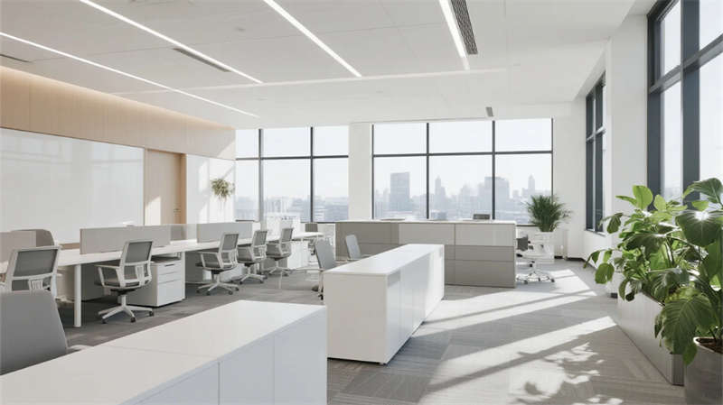 這座辦公空間設(shè)計(jì)以現(xiàn)代簡(jiǎn)約風(fēng)格為核心,通過統(tǒng)一的美學(xué)語言打造出和諧而高效的空間體驗(yàn)。整體采用中性色調(diào)和簡(jiǎn)潔線條,強(qiáng)調(diào)自然光的最大化利用,營(yíng)造出明亮通透的氛圍。功能區(qū)布局注重流暢性,從接待區(qū)的開放迎賓到開放式辦公區(qū)的協(xié)作精神,再到會(huì)議室的專業(yè)嚴(yán)謹(jǐn),每個(gè)空間都融入了綠植點(diǎn)綴,增添生機(jī)感。休閑休息區(qū)提供舒適放松的角落,獨(dú)立辦公室則平衡了隱私與專注,茶水間和衛(wèi)生間延續(xù)了簡(jiǎn)約實(shí)用的設(shè)計(jì)原則,多功能室支持靈活多變的活動(dòng)需求。設(shè)計(jì)亮點(diǎn)在于對(duì)生態(tài)元素的融合,如大量綠植和自然光,提升了環(huán)境品質(zhì),同時(shí)現(xiàn)代家具和材質(zhì)選擇強(qiáng)化了簡(jiǎn)約美學(xué),確保功能與美感的統(tǒng)一。該項(xiàng)目體現(xiàn)了對(duì)辦公環(huán)境的革新思考,致力于創(chuàng)造一個(gè)既高效又宜居的空間,成為城市辦公新標(biāo)桿。