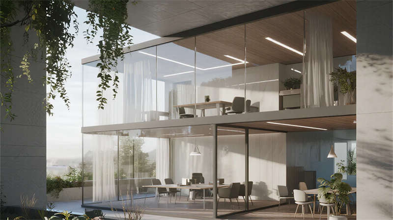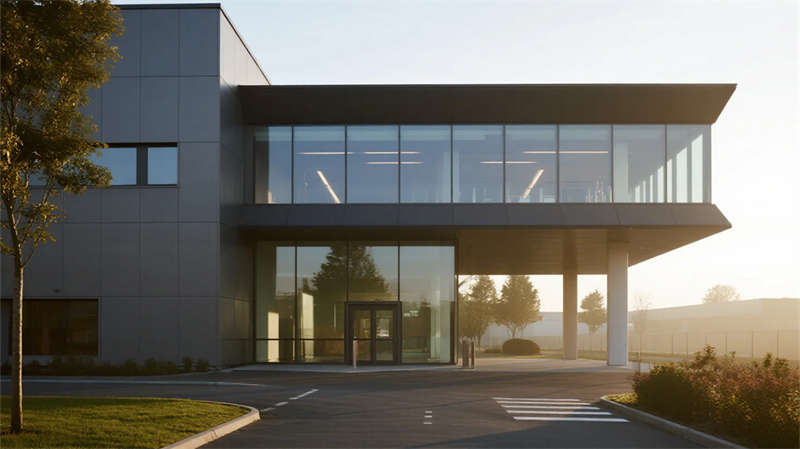 本設(shè)計(jì)以現(xiàn)代簡(jiǎn)約語(yǔ)言重構(gòu)廠房美學(xué)。設(shè)計(jì)摒棄冗余裝飾,聚焦材料本質(zhì)——銀灰金屬立面與通透玻璃幕墻形成虛實(shí)對(duì)比,利落線(xiàn)條切割出幾何體塊,在光影流動(dòng)中彰顯力量感。廠區(qū)布局強(qiáng)調(diào)功能與自然的共生:屋頂光伏板陣列呼應(yīng)綠色生產(chǎn)理念,嵌入式空中花園與竹林連廊為鋼鐵空間注入呼吸感,員工休憩區(qū)模糊了工業(yè)與生活的邊界。