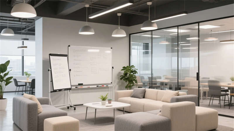 這個辦公室設計以現代簡約風格為核心,通過流暢線條和中性色調,打造出一個和諧而高效的工作環境。整體布局強調開放性與功能性,功能區之間無縫銜接,利用玻璃隔斷和自然光,營造通透感。接待區以溫馨氛圍迎接訪客,開放辦公區促進團隊協作,會議室提供寧靜討論空間。休息區與茶水間則融入綠植元素,為員工提供放松角落,提升日常舒適度。經理辦公室和專注區平衡了私密需求,協作空間鼓勵創意交流。設計注重人性化細節,如柔和燈光和懸浮家具,減少視覺雜亂,同時強化生態理念。整個空間不僅美觀實用,還體現了對員工福祉的關懷,營造出積極的工作氛圍。蚌埠元素貫穿始終,展現地方特色與現代美學的融合,讓辦公環境成為靈感源泉。