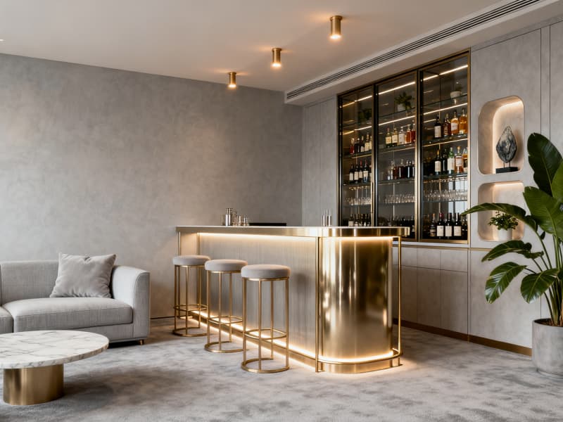 本設計聚焦蚌埠4500平酒店的多元需求,以現代輕奢風格為核心,融合商務屬性與休閑體驗,打造兼具質感與溫度的旅居空間。整體色調以米白、淺灰為基礎,搭配香檳金與深灰色作為點綴,通過石材、金屬、絲絨等材質的碰撞,傳遞精致而不浮夸的輕奢美學。
