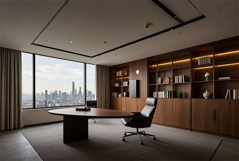 本案為 6000 平方米現代化科技辦公樓裝修項目,設計采用 ' 未來辦公生態 ' 理念,以藍灰主色調構建專業商務氛圍。空間規劃突破傳統格局,大堂設置 10 米挑空 LED 藝術裝置墻,智能光控系統實現晝夜模式切換。開放式辦公區采用模塊化組合家具,集成無線充電、智能升降等人性化功能。會議室配置可觸控霧化玻璃隔斷系統,實現空間靈活轉換。特別設計的階梯會議中心配備全景聲控系統,墻面采用吸音穿孔鋁板確保會議私密性。環保理念貫穿始終,選用零甲醛板材和可回收地毯,屋頂花園配置雨水收集系統。燈光設計采用色溫可調 LED 光源,通過智能中控系統實現場景模式一鍵切換,打造高效、舒適、可持續發展的新型辦公生態圈。