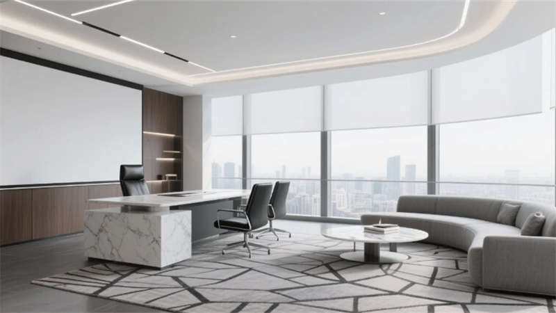 全案貫穿啞光金屬、木飾面與大理石材質細節(jié),4000K中性光統(tǒng)一色溫,智能燈光系統(tǒng)提升能效。設計通過嚴謹的線條分割與人性化功能分區(qū),實現(xiàn)美學與實用性的深度融合,重新定義現(xiàn)代辦公空間的品質標準。