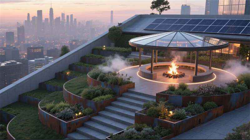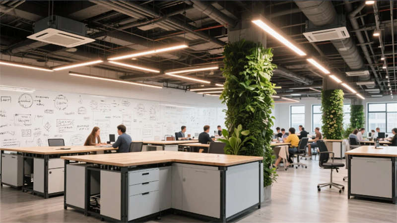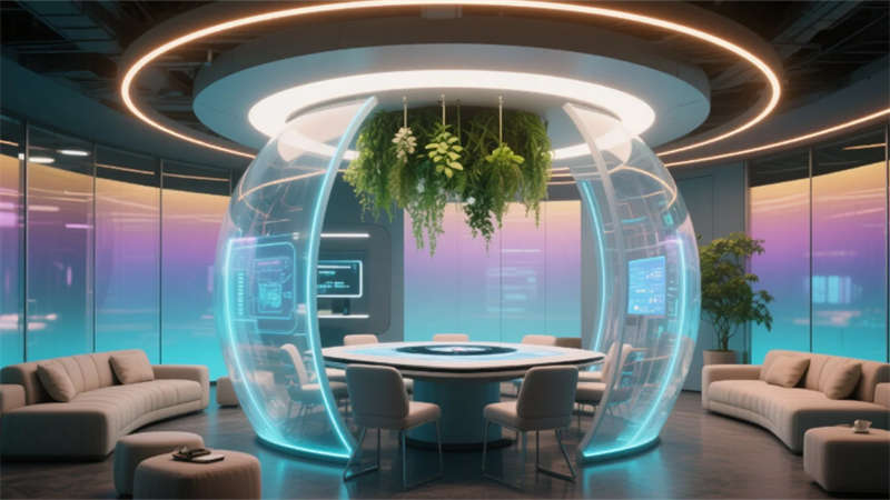 最具突破性的神經中樞系統貫穿全樓,自適應環境調節光線、溫濕度與聲景,冥想艙的仿生穹頂與創客空間的工業活力形成張力平衡。屋頂花園成為能量再生場,光伏涼亭與霧森系統在合肥的晴空下營造城市綠洲。