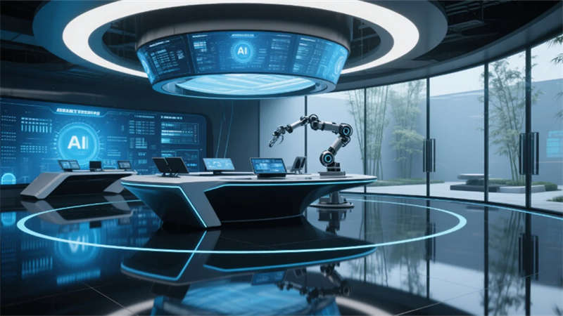 這座人工智能核心建筑以“人本科技”為基因,將自然生態脈絡植入未來科技肌理。流動空間打破傳統辦公界限,智能大堂的垂直森林與數據藝術共生,協作艙如發光的神經節點散布于開放平面。實驗室成為科技與自然對話的劇場,玻璃幕墻外竹林隨風搖曳,室內數據流如星軌閃爍。