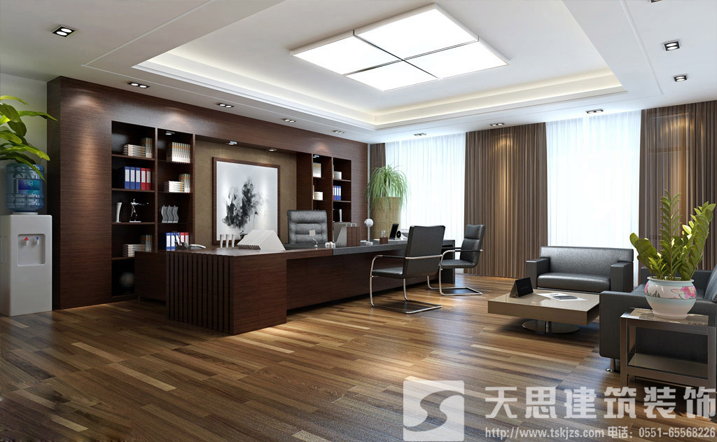 經理辦公室的裝修要體現穩重、大方、明快、簡潔、有文化氣息,能夠反映公司形象,同時加強公司的文化感。
