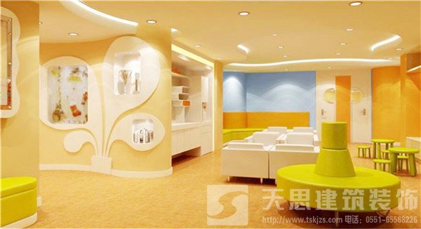 親子早教機構在功能設計上區別于幼兒園的區域功能。因此我們在進行親子早教中心的環境設計時,不僅將裝修思路與幼兒園設計一概而論。天思裝飾指出,親子早教中心的主體人群由于年齡較小,缺乏自我行為和安全的控制能力,所以在早教中心的環境設計過程當中,要符合兒童心理特征,能引起孩子的注意和興趣,選材要以綠色環保為主。