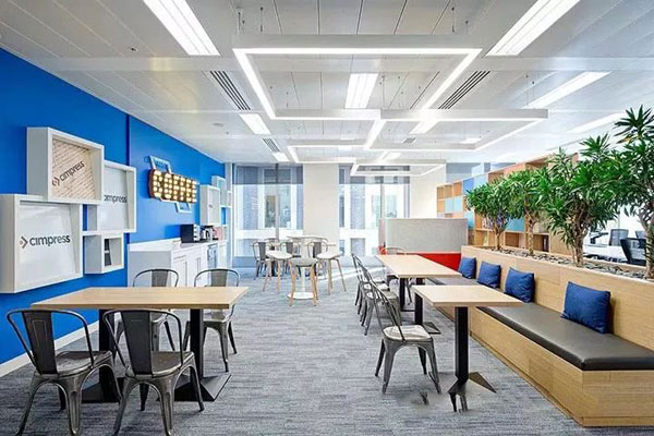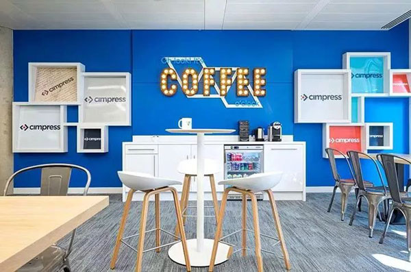 電子商務的快速崛起給傳統印刷行業帶來強大的沖擊力。想要在這個行業站穩腳除了品牌宣傳以為,辦公室裝修也是很重要的一部分,良好的辦公環境不僅能給客戶增加信任感,也可以為招攬更多人才奠定基礎。本案例主導了室內的色彩規劃與圖形創意。大面積炫目的藍色不僅強化了品牌認知,還帶來強烈的視覺沖擊。休閑協作區配以輕淺的木飾面和充滿活力的綠植,打造愜意舒適的空間氛圍。