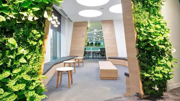 小編認為最有趣的是傾斜感的墻體圍合出的相對獨立的休閑區,入口兩側是繁茂的垂直綠植裝飾讓這里別有洞天。開敞的落地玻璃窗讓這里滿室生輝,手捧一杯醇香的咖啡坐在窗邊是何等的心曠神怡,活力滿滿!