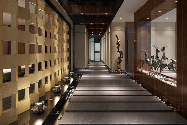 走廊的風格營造出小橋流水的精巧,漫步其中,心如止水,心境得到極大釋放,同時在色彩的運用上襯托出高貴典雅。