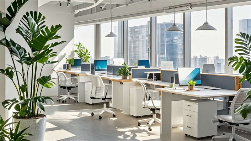 本項(xiàng)目為8000平現(xiàn)代科技風(fēng)辦公樓,以‘簡(jiǎn)約高效·生態(tài)智能’為核心設(shè)計(jì)理念。整體采用淺灰、白與原木色系,通過大理石、玻璃和金屬材質(zhì)碰撞,營造專業(yè)且通透的辦公環(huán)境。空間規(guī)劃注重功能分區(qū):智能會(huì)議室配備遠(yuǎn)程協(xié)作系統(tǒng),開放式辦公區(qū)采用模塊化工位,走廊垂直綠化墻搭配空氣凈化系統(tǒng)。特別設(shè)計(jì)階梯式休息區(qū)與生態(tài)茶水間,利用弧形家具和隱藏式照明緩解工作壓力。燈光系統(tǒng)采用色溫可調(diào)LED,配合落地窗采光優(yōu)化,實(shí)現(xiàn)能耗智能控制。所有區(qū)域均集成物聯(lián)網(wǎng)終端,通過統(tǒng)一中控系統(tǒng)實(shí)現(xiàn)空間預(yù)約、溫濕調(diào)控等功能,打造智慧化現(xiàn)代辦公空間。