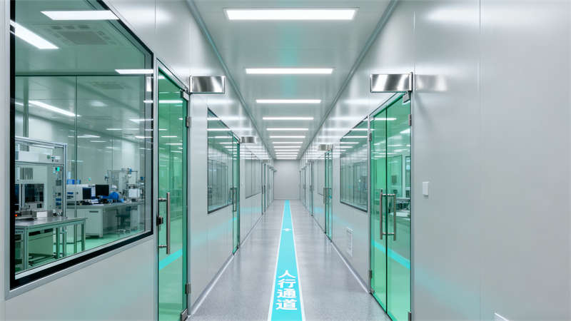 室內(nèi)空間劃分清晰,入口風(fēng)淋室作為潔凈第一道防線,搭配專屬衣柜區(qū),助力人員規(guī)范進入;核心生產(chǎn)區(qū)以通透玻璃隔斷劃分,搭配高效過濾設(shè)備,營造潔凈通透的操作環(huán)境,操作人員身著專業(yè)潔凈服,盡顯規(guī)范作業(yè)氛圍。輔助區(qū)域同樣注重細節(jié),物料暫存間采用防塵物料架與傳遞窗設(shè)計,確保物料潔凈存儲與轉(zhuǎn)運;無菌實驗室配置專業(yè)安全柜與試劑柜,滿足高潔凈等級操作需求;潔凈走廊通過清晰標(biāo)識引導(dǎo)動線,連接各功能區(qū)域,提升空間流轉(zhuǎn)效率;空調(diào)機房作為動力核心,設(shè)備布局規(guī)整,保障整體潔凈系統(tǒng)穩(wěn)定運行。?