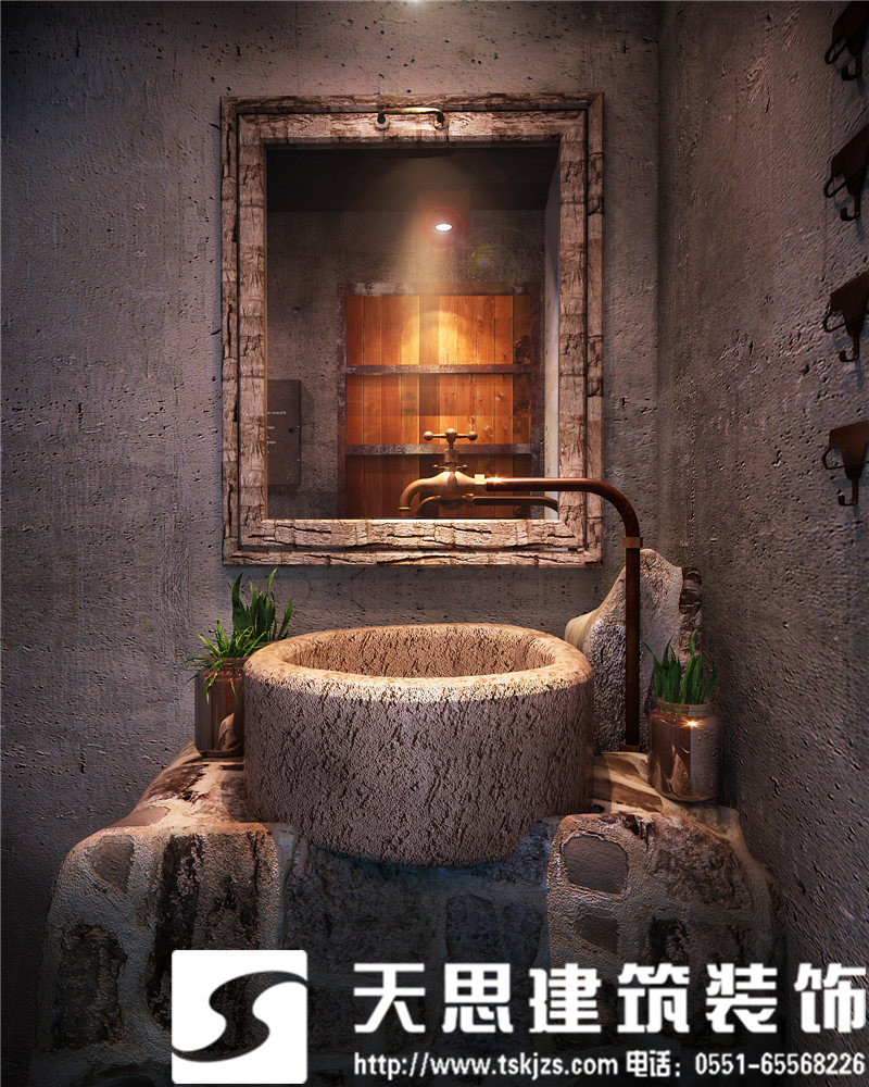 木質相框的脈絡、天然花石的紋理、氤氳在鏡面上五彩的光暈和玻璃杯里盎然的綠植,這里的一切都傳達著溫馨的感覺。混凝土墻體流動著線條美,落地窗朦朧而通透,這種開放式的圍蔽,匠心獨運。