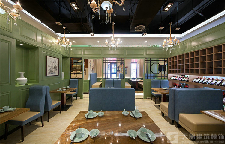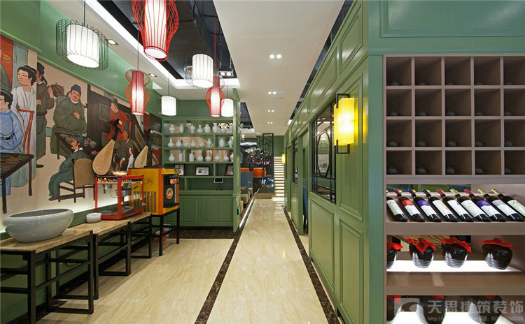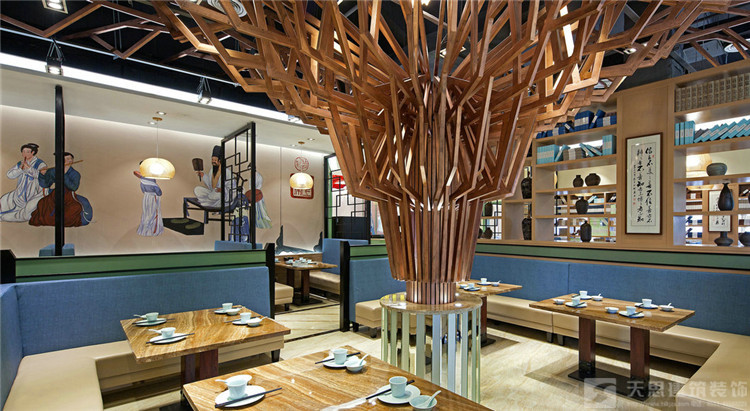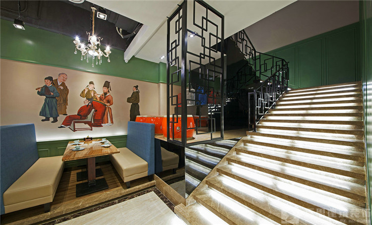 夜宴餐廳以五代十國時南唐畫家顧閎中的作品《韓熙載夜宴圖》為創(chuàng)作靈感來源,通過“聽彈琵琶”,“集體觀舞”,“中間休息”,“各自賞月”。“依依惜別”,等五個章節(jié)來還原當(dāng)時的盛況,通過畫中設(shè)計元素提煉,及色彩的組合,達到客戶用餐的體驗感。