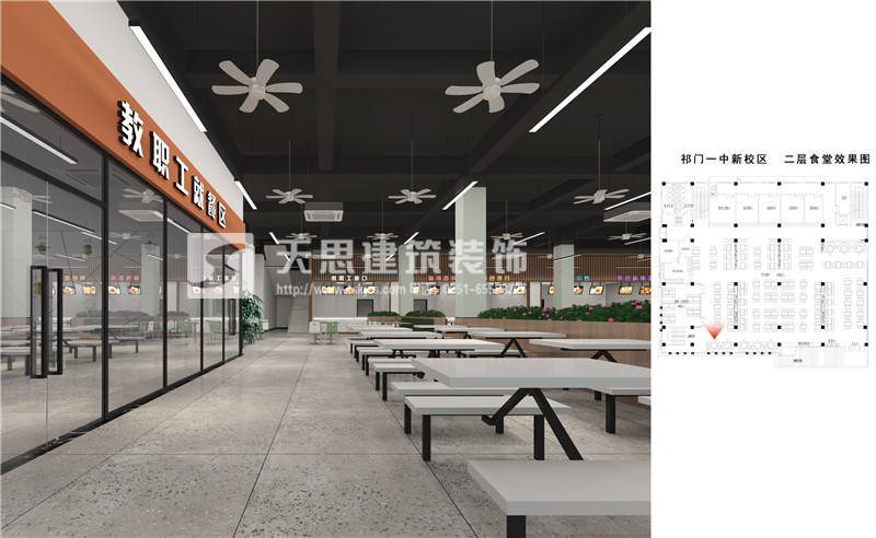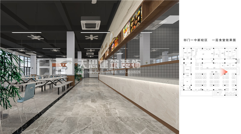 安徽天思專業(yè)專業(yè)提供餐廳設(shè)計(jì),食堂裝修施工服務(wù),質(zhì)量有保障。以下為祁門(mén)一中食堂設(shè)計(jì)效果圖,請(qǐng)您欣賞。如果您有相關(guān)需求請(qǐng)及時(shí)與我們聯(lián)系。
