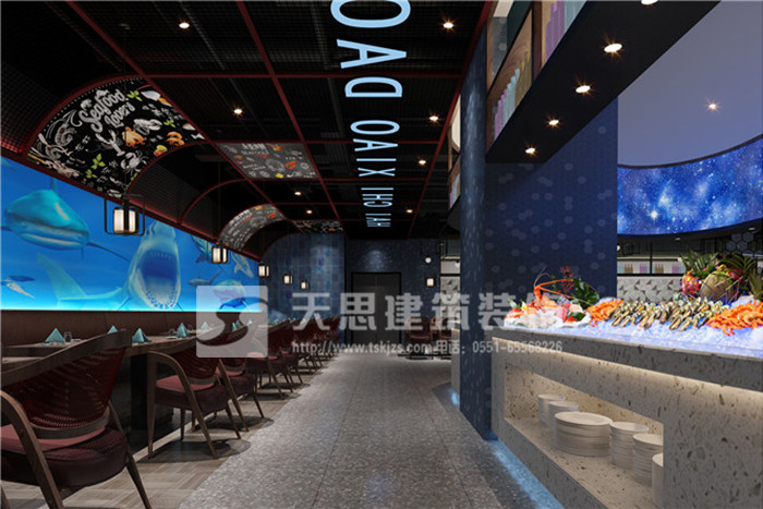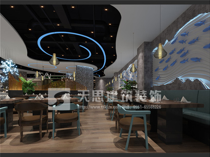 設(shè)計中的許多元素都是取材于海洋文化,不但讓餐廳充滿了神秘的歷史厚重,還讓豐富多彩的海洋生物成為裝點餐廳的水族館,四處都可以看見各種海洋精靈悠游的風(fēng)景。