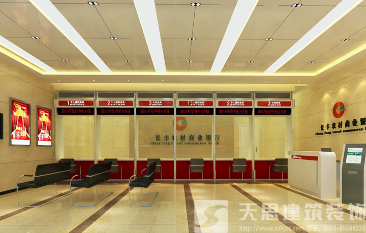 項目名稱:長豐縣農村信用社裝修效果圖 設計師:孫守文 裝修面積:300平米 項目地址:安徽省長豐縣農村信用合作社 設計簡介:長豐縣農村信用合作社設計現代簡約