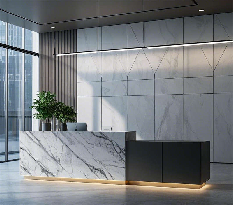 這間5000平方米的辦公室以現代創新為核心設計理念,整體空間采用開放式布局,結合極簡主義與未來科技感,營造出高效、舒適且富有活力的工作環境。前臺區域以大理石臺面...
