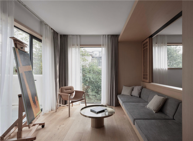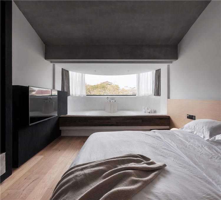 設(shè)計師針對民宿的入住功能一共設(shè)計了八間不同布置風(fēng)格的客房,將入住功能布置與二三四層,重新規(guī)劃房間平面,擴大每一個房間的衛(wèi)生間,增加落地窗,以此增加舒適度,同時為入住的客人創(chuàng)造趣味性的體驗。在每一層中間以中島作為過渡,對應(yīng)每一個房間,即協(xié)調(diào)客房的動線關(guān)系,又給每一位入客人提供便捷的交流空間。