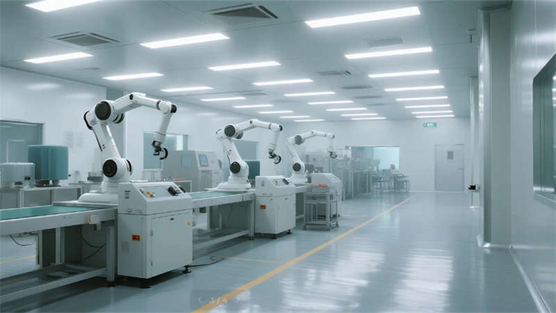 生產(chǎn)空間聚焦高效與潔凈,智能機(jī)械臂單元與模塊化管線系統(tǒng)滿足精密材料制造需求,冷色調(diào)照明強(qiáng)化科技嚴(yán)謹(jǐn)感。研發(fā)區(qū)域突破傳統(tǒng)廠房格局,落地窗引入自然光與園區(qū)景觀,垂直綠墻凈化空氣的同時激發(fā)創(chuàng)造力。