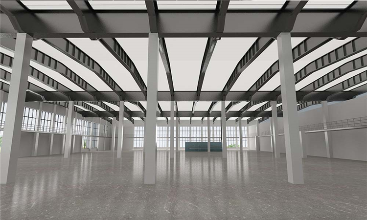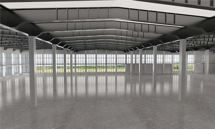 該廠房對地面承重的要求比較高,同時對廠房整體的的美觀也有所要求,在該案例的地面建造上使用混凝土做為地面地基,在地基的基礎上覆蓋一層環氧地坪,保證了美觀同時也起到防塵防靜電的作用。頂部為鋼結構框架,消防、通風、及中央空調都在該案例中有所運用,在保證實用的基礎上不失大方和簡約的風格。