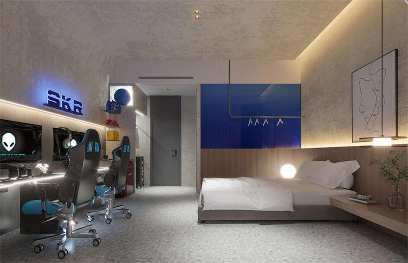 相信很多電競酒店投資人在籌備設計時,都會思索如何將電競元素和入住體驗完美融合。一方面需考慮符合電競愛好者審美,增加潮酷元素;另一方面則需考慮睡眠質量,減少炫目元素。