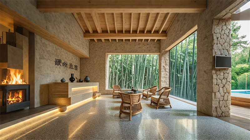 某江淮水岸民宿以“水系文明”為線索,入口設(shè)置霧幕投影再現(xiàn)淝河古渡,走廊地面鑲嵌歷代治水銘文玻璃磚,頂層露臺(tái)通過光影秀演繹巢湖流域生態(tài)變遷,形成沉浸式文化長廊。