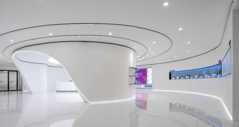 從踏入門廳開始,就劃定了宇宙視界,大廳以天花曲線燈帶統(tǒng)籌整體空間關(guān)系,異形包裹的空間內(nèi),橢圓形發(fā)光燈膜在營(yíng)造時(shí)空感的同時(shí)輔助自然光線帶來(lái)尤為舒適的光照感為了將空間利用率達(dá)到最大。