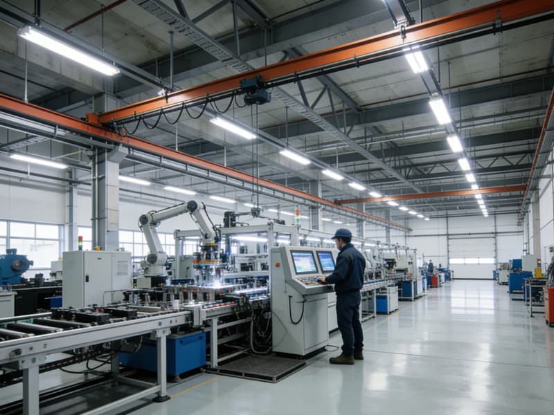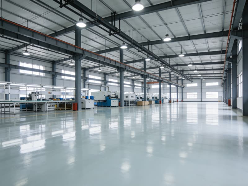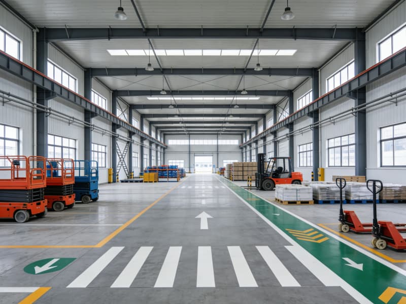 步入內(nèi)部,生產(chǎn)區(qū)域空間開(kāi)闊,頂部采用裸露的鋼梁結(jié)構(gòu),搭配軌道式的照明燈具,保證充足且均勻的光線(xiàn),滿(mǎn)足高強(qiáng)度的生產(chǎn)作業(yè)需求。地面鋪設(shè)耐磨的環(huán)氧樹(shù)脂地坪,不僅耐用,還易于清潔和維護(hù)。