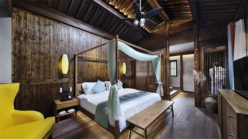 仿舊家具和藝術品的配置,也使臥室更加了時代感,總之黃山民宿設計就是化腐朽為神奇,在懷舊樸實中體現典雅的空間氣質。使整個室內空間基調散發著簡約雅致的氣質。多種風格主題的客房空間,通過巧妙地構思,將更多具有現代藝術質感的裝飾融合到黃山民宿設計空間中,從而提升民宿所表現的藝術境界。時尚簡約風的黃山民宿設計,會更容易得到年輕人的喜愛,整體簡潔大方。