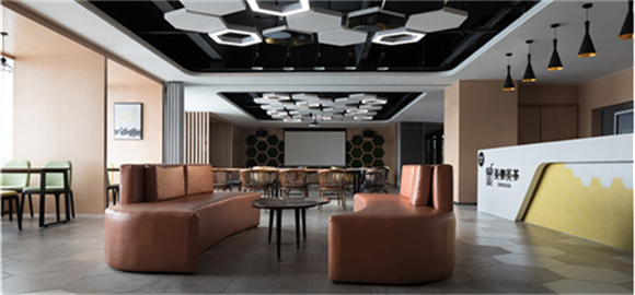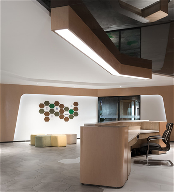 通過空間調度,模糊各個工作區域間的界限,打造既開放、又不乏私密性的辦公區。除此之外,曲線與直線在空間共存,線條的形式感使辦公室充滿現代化與創意十足,極大的在視覺上滿足了客戶的營銷訴求,構建來人第一感性認知。