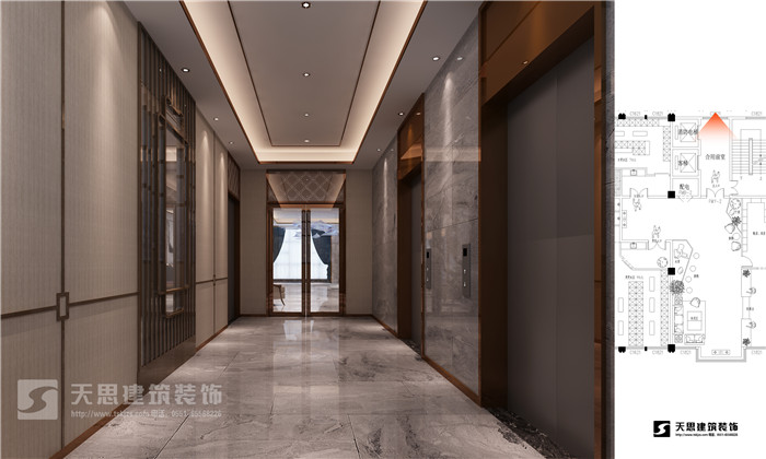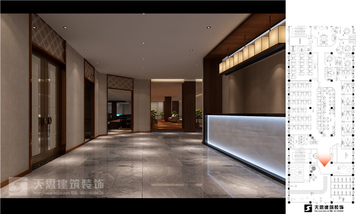 大廳設計注重空間的利用以及色彩之間的相互映襯,本案例設計師有規律的進行空間布局,燈光采用暖光,整體給人一種舒適感!