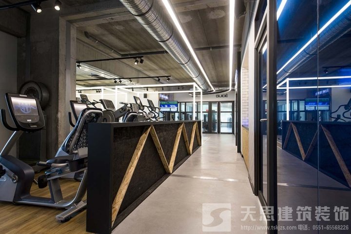 3、動(dòng)感單車房設(shè)計(jì) 動(dòng)感單車房的裝修和操房差不多,在風(fēng)格設(shè)計(jì)中也要求注意與整個(gè)健身房的風(fēng)格融合統(tǒng)一,不要只追求酷炫感。動(dòng)感單車是一個(gè)特殊項(xiàng)目,具有極強(qiáng)的煽動(dòng)性,可以即刻提升會(huì)員或參觀者的健身欲望,因此一般安排在整個(gè)健身房都能注意到的空間里。