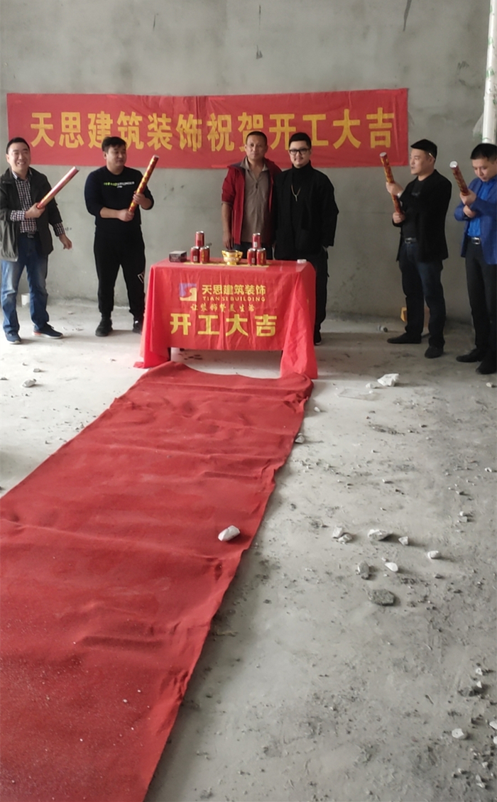 喜慶的開工桌,龍頭開工錘,鮮花美酒水果為此次開工儀式營造了一個喜慶、和諧、美滿的氛圍,預示著整個項目的平安順利,和諧美滿,也預祝火鍋店開業后能夠財源廣進.