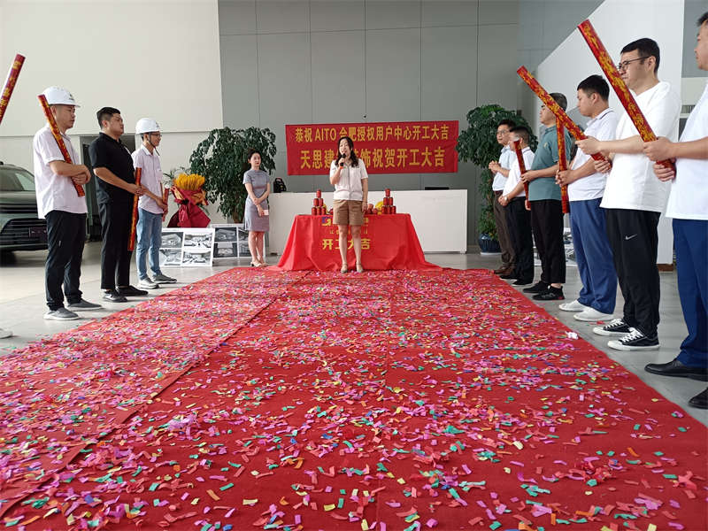2022年8月5日,我們又迎來了新項目的開工,在這里安徽天思裝飾全體員工恭賀AITO合肥授權用戶體驗中心裝修工程開工大吉!開工儀式于項目現場隆重舉行。現場禮花飛舞,開工錘聲音響徹工地每一個角落,讓我們再一次恭祝AITO合肥授權用戶體驗中心開工大吉!
