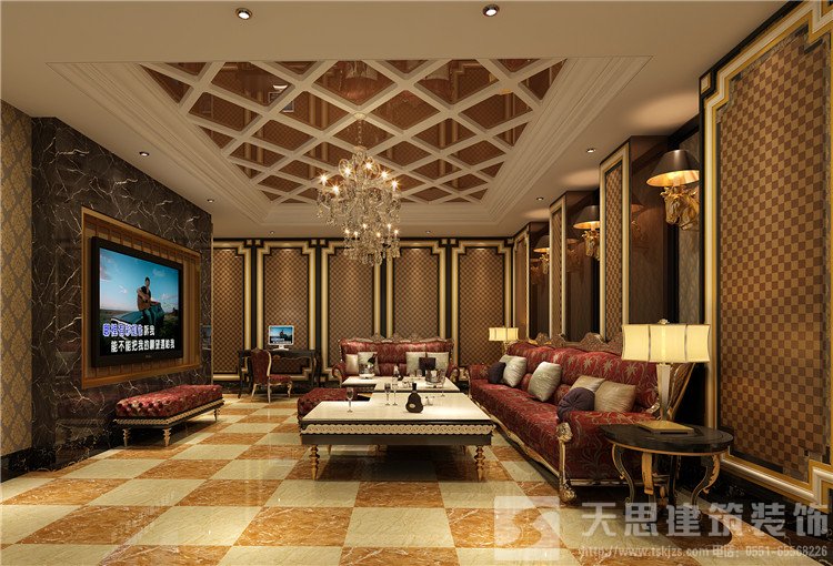 大廳是給消費者的第一印象,是KTV裝修設(shè)計的關(guān)鍵。KTV大廳設(shè)計中最重要的要素就是一定要寬敞明亮,無論你的門面朝哪個方位,大廳的設(shè)計都要符合風(fēng)水的要求。大廳設(shè)計在材質(zhì)上要選用容易清潔的飾面材料,地面與墻面建議采用連續(xù)性的圖案和花色,這樣可以加強大廳的空間立體感。大廳的設(shè)計要有親和力,讓消費者一進門就能感覺到舒適。