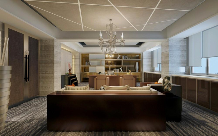 3、有質(zhì)感的辦公室設計:設計師通過簡化前臺裝飾元素來凸顯簡介的企業(yè)標識,讓綠植承載的環(huán)保元素更加醒目,同時也強調(diào)了企業(yè)的科技感。在設計前方接待區(qū)的時候,充分運用了自然色+燈光的組合來強化企業(yè)內(nèi)涵體驗。沙發(fā)、地毯、茶幾與落地燈在開放的空間里構(gòu)建了一個心理上私密的會客區(qū)域,具有濃濃的現(xiàn)代科技氣息。將空間劃分為辦公區(qū)域、交流區(qū)域、展示區(qū)域,在設計師看來總經(jīng)理辦公室相當于一個小型的迷你辦公室,既要具備多重功能,又要做到空間內(nèi)部的辦公與配套系統(tǒng)的完整與契合。通過地毯、精選的辦公桌椅,并且結(jié)合不同區(qū)域燈光的變化讓辦公空間具有層次感。