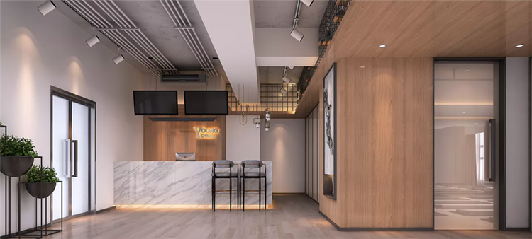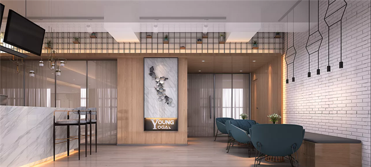 本次設計師在打造瑜伽館內(nèi)部特色時,以活力、時尚為主要設計理念,在瑜伽館大廳,設計師選用天然磚石來打造背景墻,進行全面刷白,結(jié)合天然木材打造的墻面和實木地板,再取黑色裝飾品進行點綴,使整個大廳都充滿的時尚感,而在瑜伽室,設計師則以開闊和簡潔為主,以灰色為主要色系,搭配著實木地板,不添加任何的家具,使整個空間開闊的同時,將瑜伽館的活力感盡數(shù)展現(xiàn)出來!