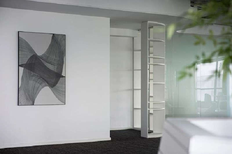 不同于以往辦公一味追求的對(duì)稱藝術(shù),經(jīng)由橫平豎直的線條勾勒,本案布局在硬朗的輪廓下規(guī)整有序,又與弧形彎道相輔相成,運(yùn)用圓角規(guī)避各處尖銳轉(zhuǎn)折,柔和視覺(jué)。