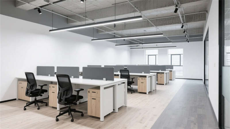 步入空間,現代簡約工業風以原始肌理與智能元素碰撞出獨特韻律。淺灰水泥與原木的基調貫穿始終,裸露結構構件與暖光線性照明形成張力,綠植垂直裝置在冷峻材質中注入自然呼吸感。開放式辦公區模塊化桌椅靈活組合,落地窗引入天光,軌道射燈精準聚焦高效場景;獨立辦公室的磨砂玻璃隔斷兼顧隱私與通透,深胡桃木桌面沉淀商務氣質。