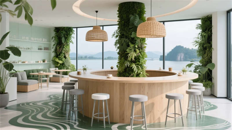 靜音艙與冥想穹頂成為平衡效率的呼吸點:蕪湖鐵畫衍生的藝術裝置、赭山色系漸變墻面與苔蘚微景觀,在科技框架中注入人文溫度。生態茶歇區環形綠植柱呼應窗外垂直花園,模糊自然與空間的界限。