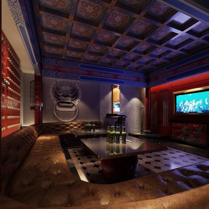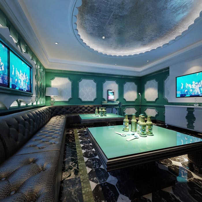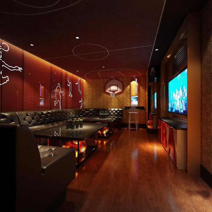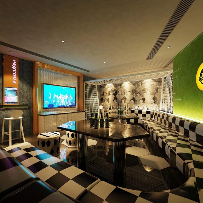 設計師在主題KTV裝修設計中,在空間設計出彰顯主題風格和個性,讓消費者能夠一眼看出KTV的經營理念和服務品質,以及KTV的藝術文化等信息。設計師善于從色彩的心理作用來分析和設計,這樣的色彩可以使房間看起來變大或縮小,給人以“凸出”或“凹進”的印象,可以使房間變得活躍,也可以使房間感覺寧靜。KTV主題墻設計上設計師以簡潔明快為主,墻面是人們視線經常經過的地方,是進門后視線的焦點,便令人耳目一新。