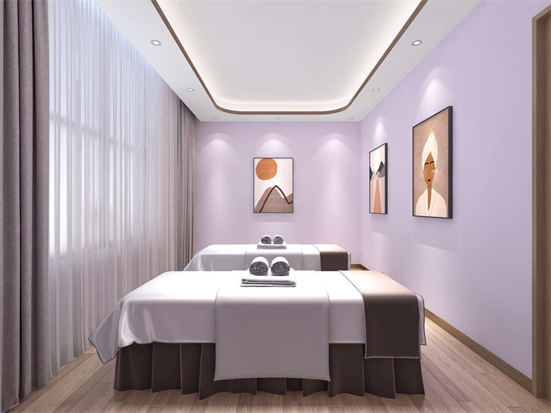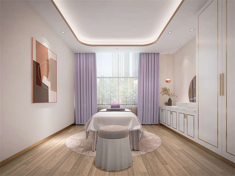 美容間,淡雅的色調與大面積留白,在視覺上體現出一種引導性和動感的體驗,頗有動靜怡然的空間氣氛。
